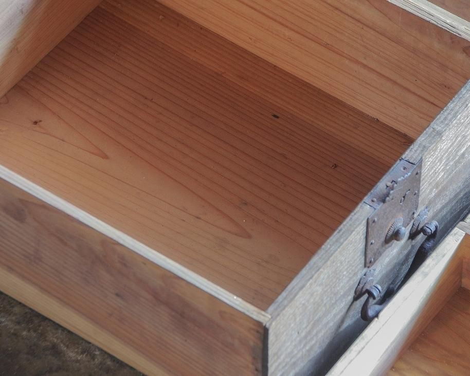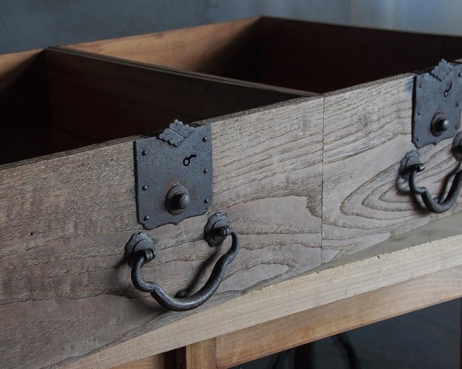 枯れた風合いと重厚な取っ手金具のバランスが良いです。