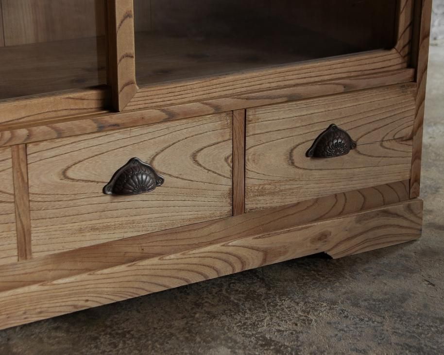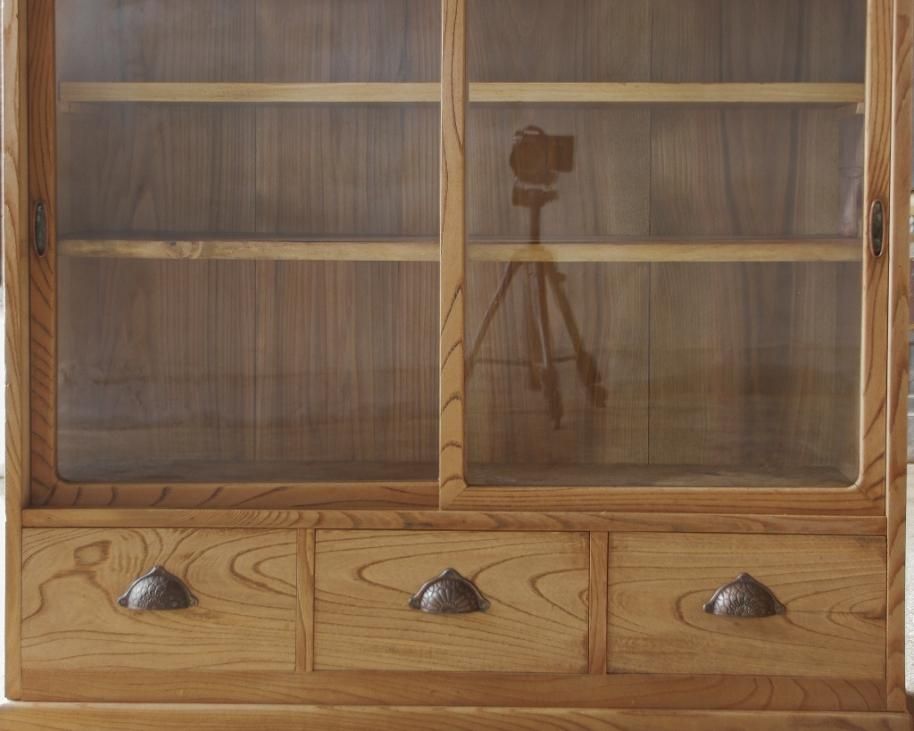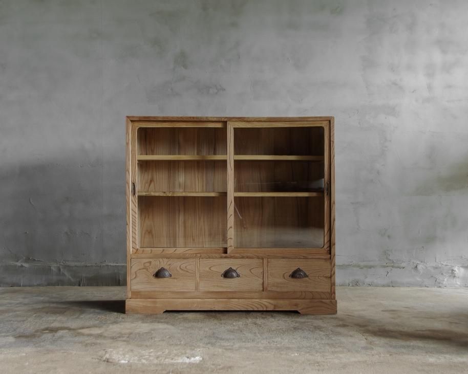 3杯引き出しのガラス戸棚。