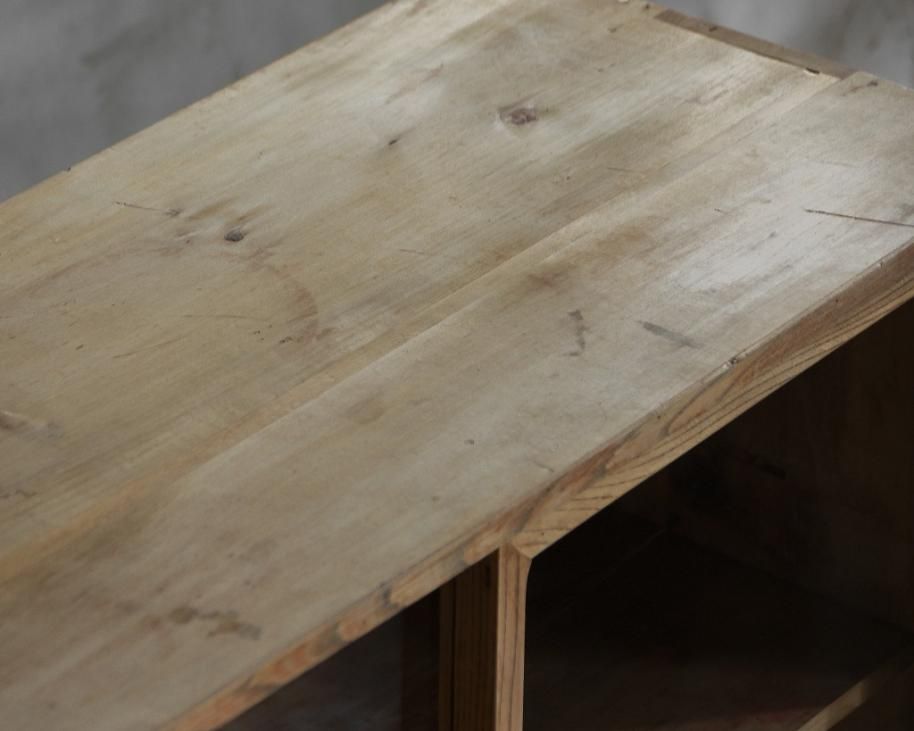 古い家具ですので、傷、凹み、シミ等ありますが、家具として使用上問題ないものは味わいとして残しています。