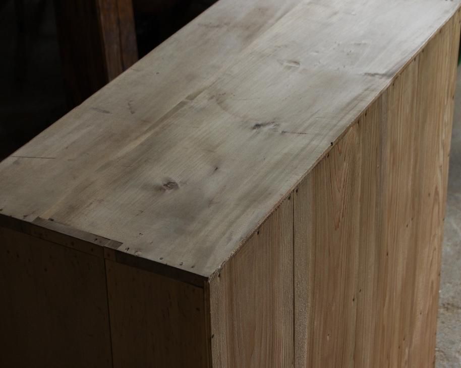 前面が欅材、天板や側板は朴材で造られています。