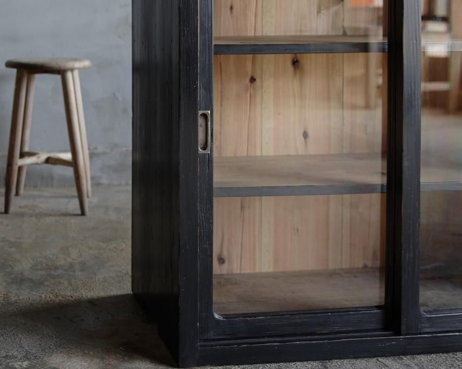 黒色のガラス戸棚