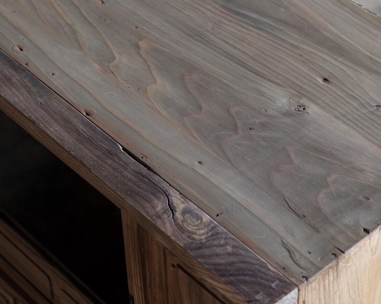古い家具ですので、傷、凹み、補修跡、シミ等ありますが、家具として使用上問題ないものは味わいとして残しています。
