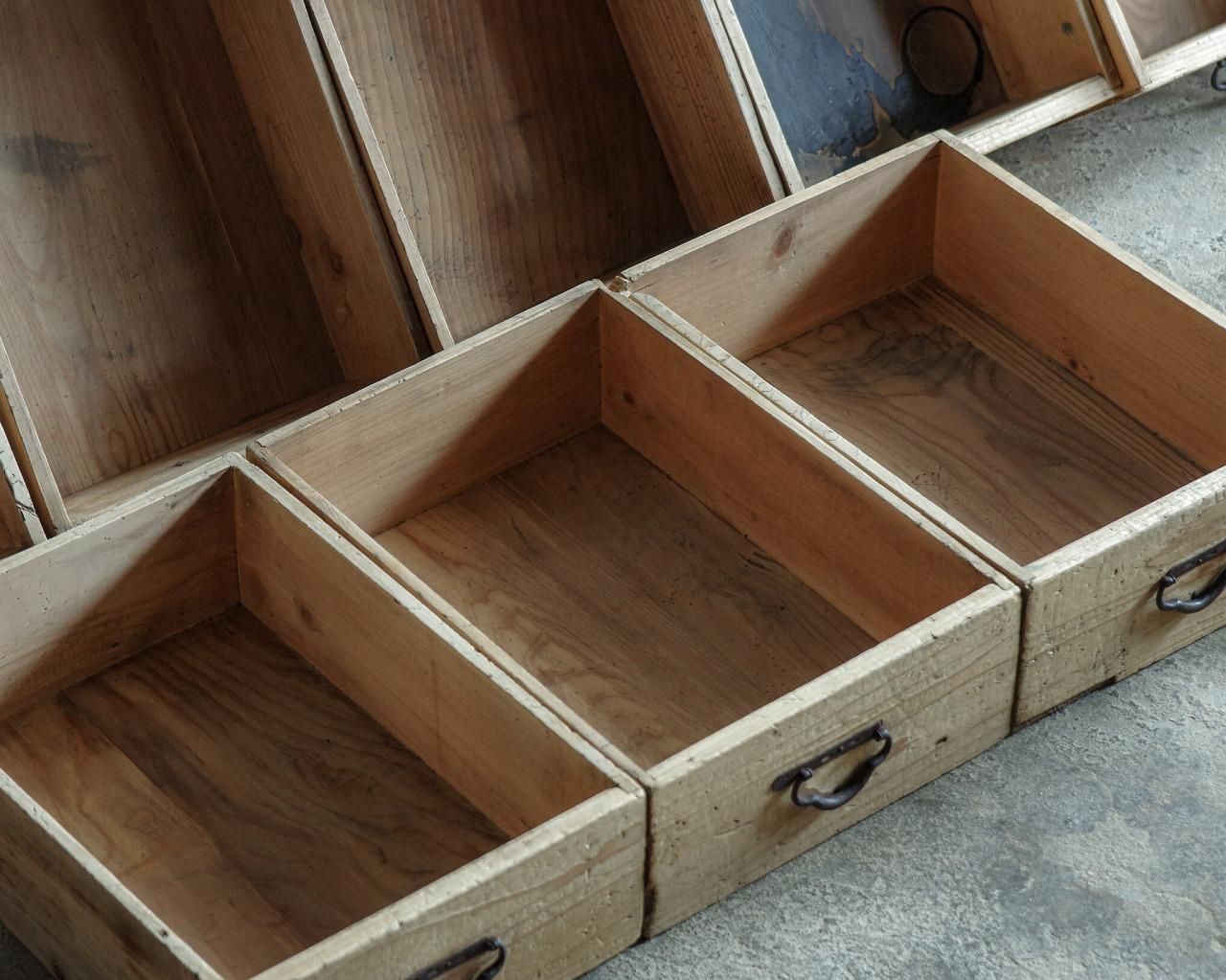 古い家具ですので、傷、凹み、シミ等ありますが、家具として使用上問題ないものは味わいとして残しています。