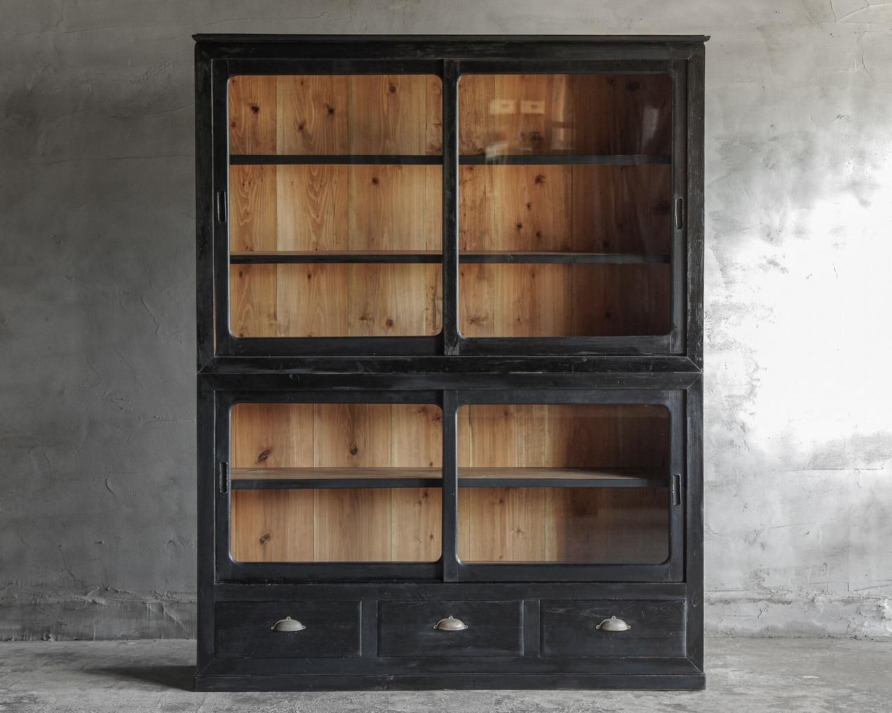 ※2枚目の画像の通り【大きめの黒戸棚2(型番0448)】と重ねて使用出来ます。