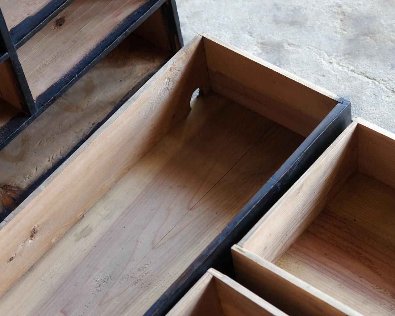 古い家具ですので、傷、凹み、シミ等ありますが、家具として使用上問題ないものは味わいとして残しています。