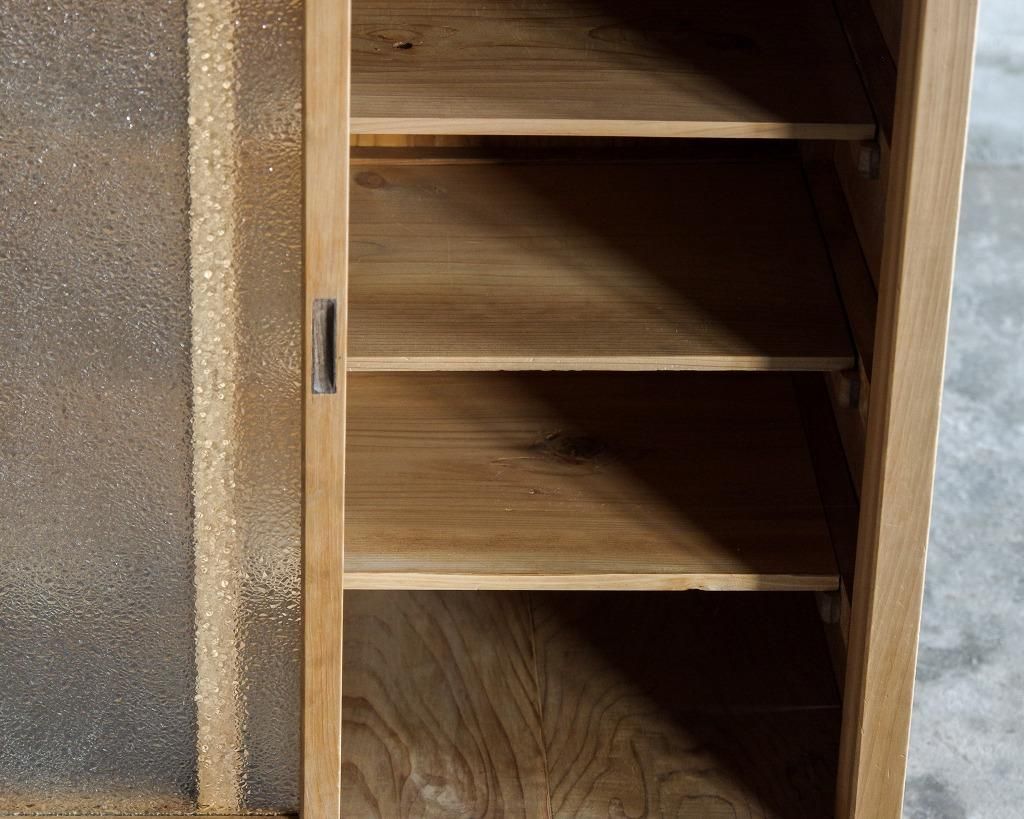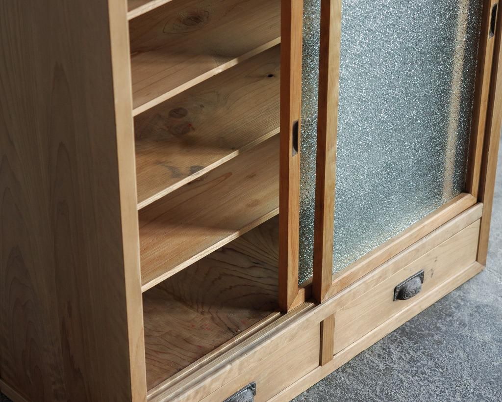 程よく目隠しされるのも実用性が高く、食器棚に適しています。