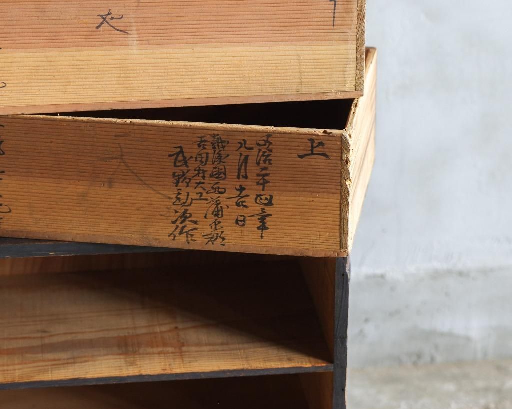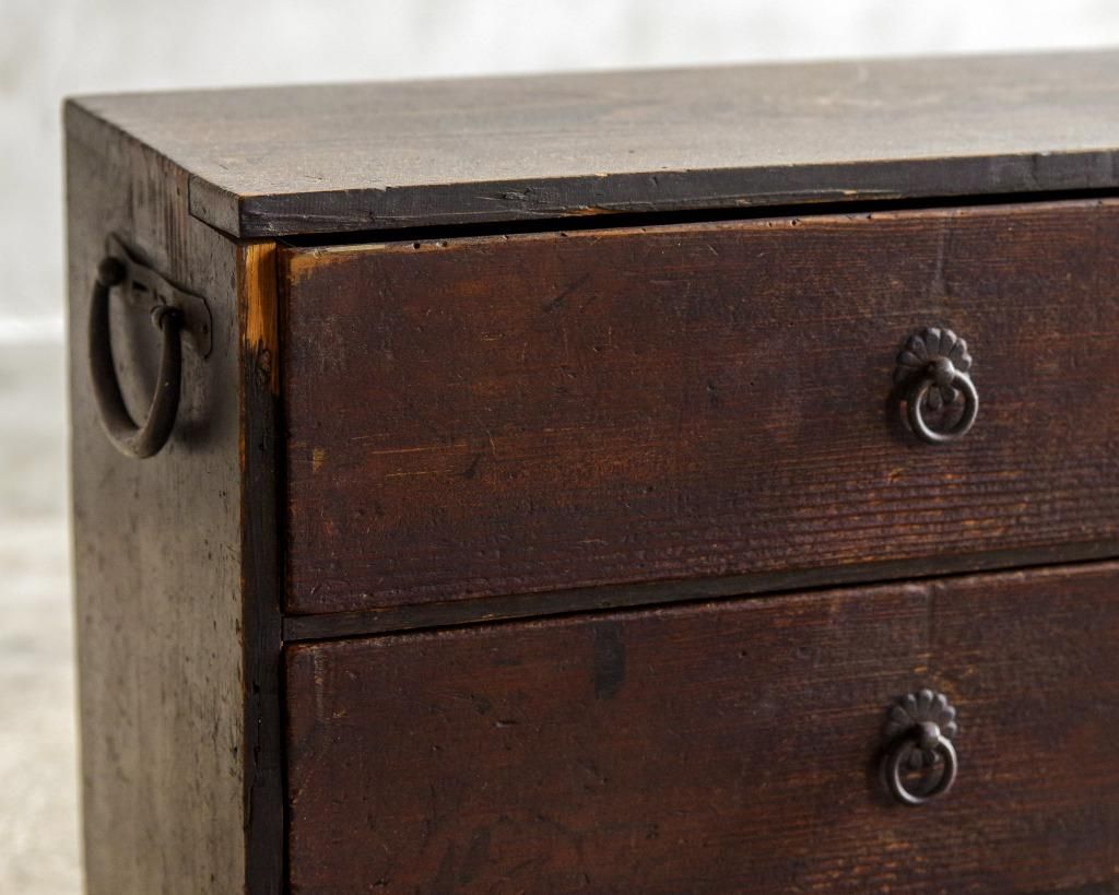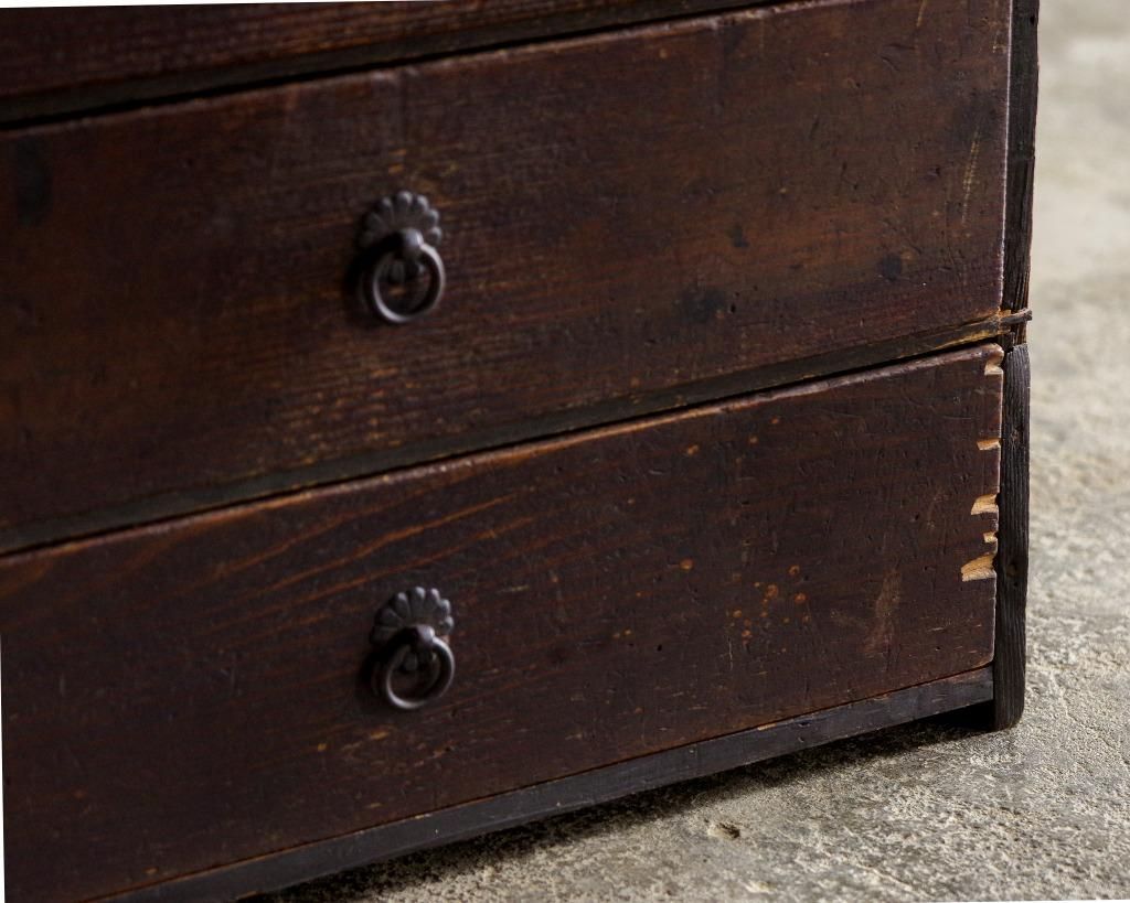 古い家具ですので、傷、凹み、補修跡、シミ等あります。これら使用上問題ないものは味わいとして残しています。