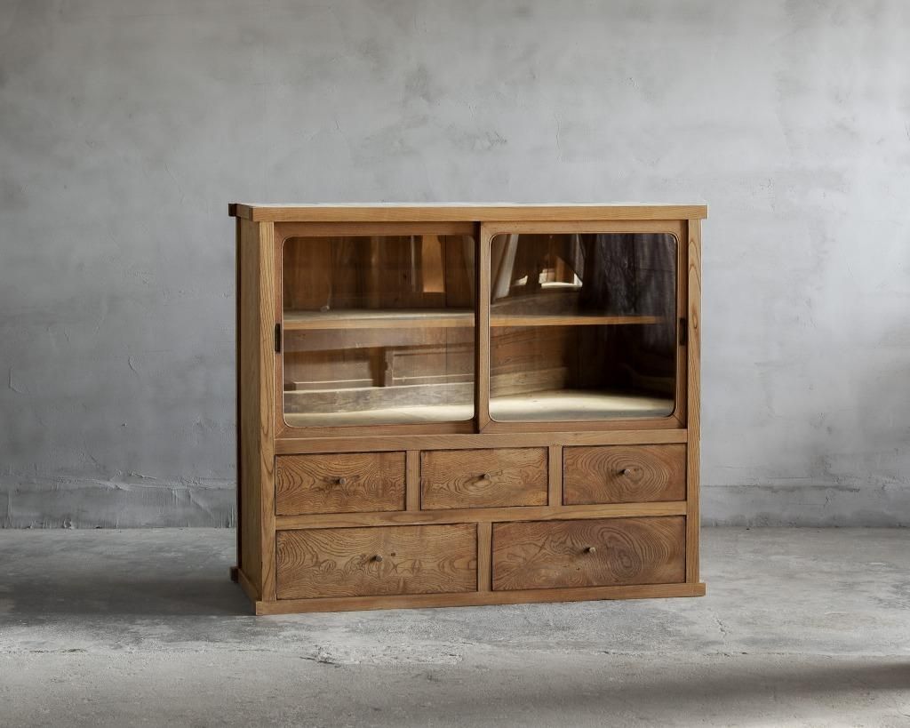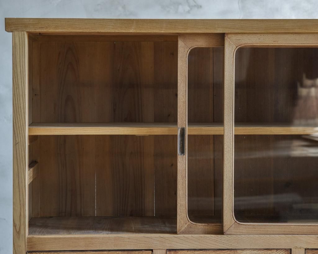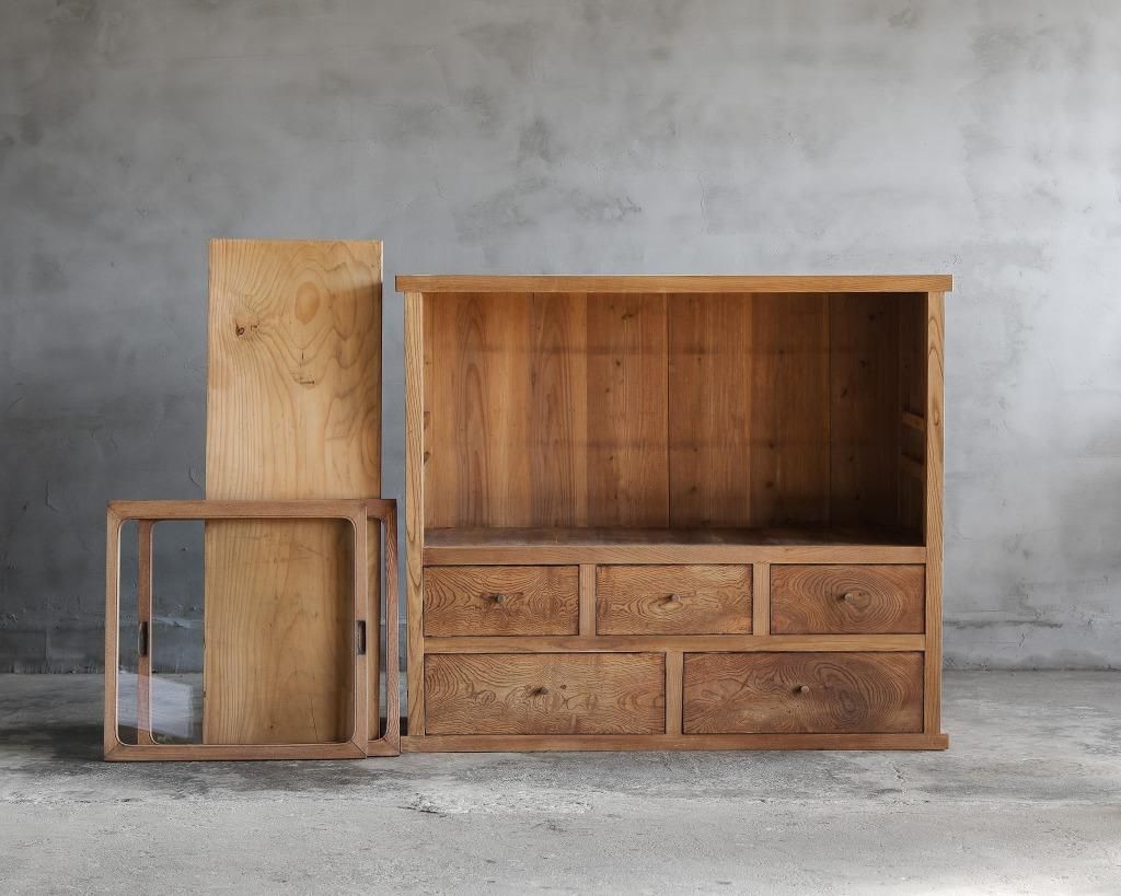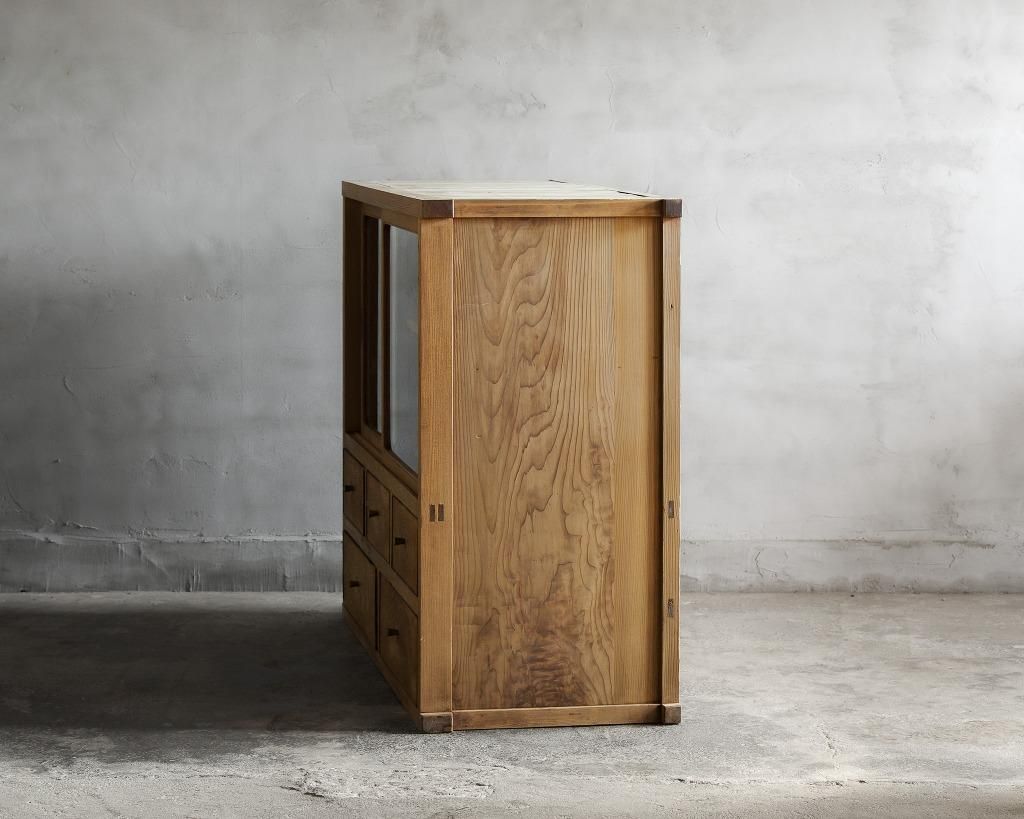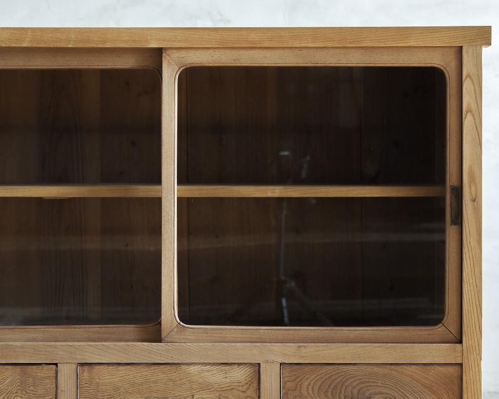 耐荷重を高めるべく、天板に補強を施してます。家電を載せて食器棚にお使いいただけます。
