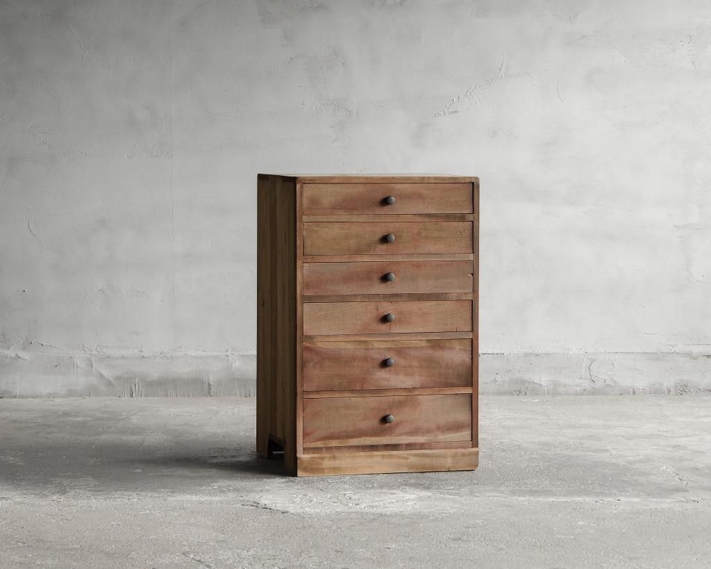 古い家具ですので、キズ、凹み、シミ、軽微なワレなどある場合もございますが、家具として使用上問題ないものは味わいとして残しています。