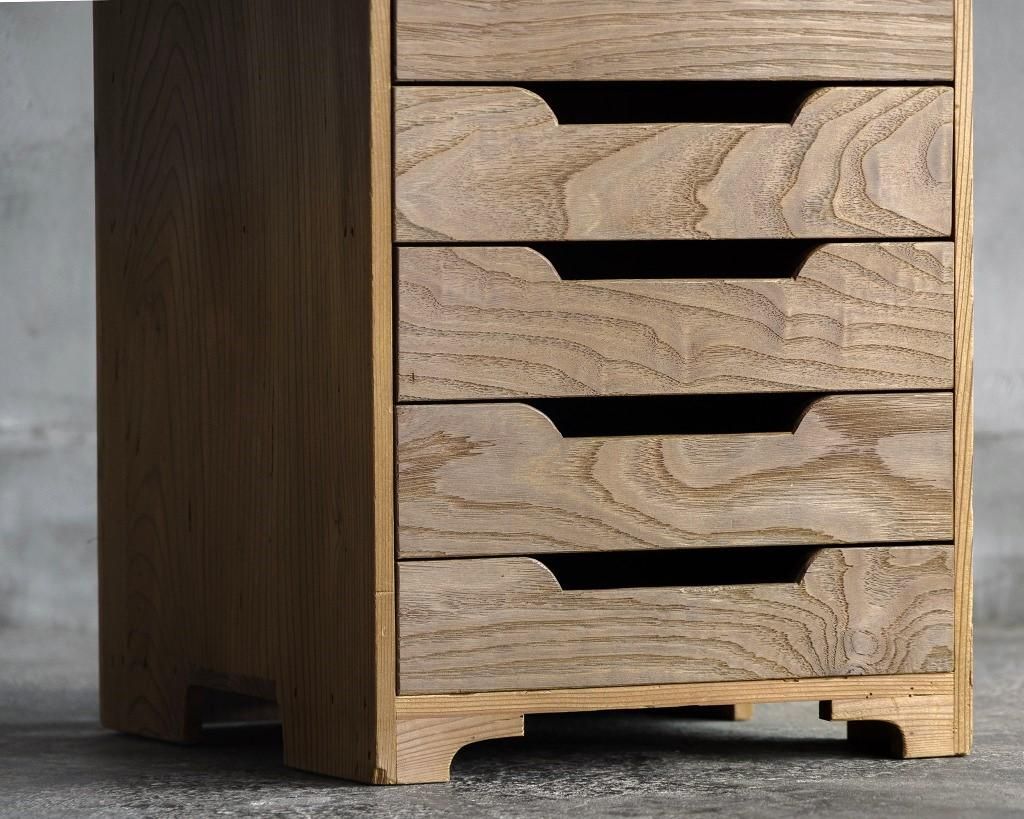 引き出しの前面は深みのある色合いの栗材で作られています。