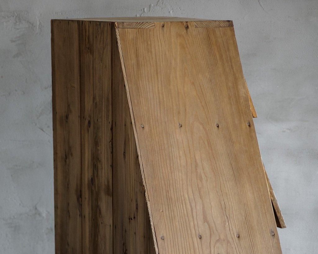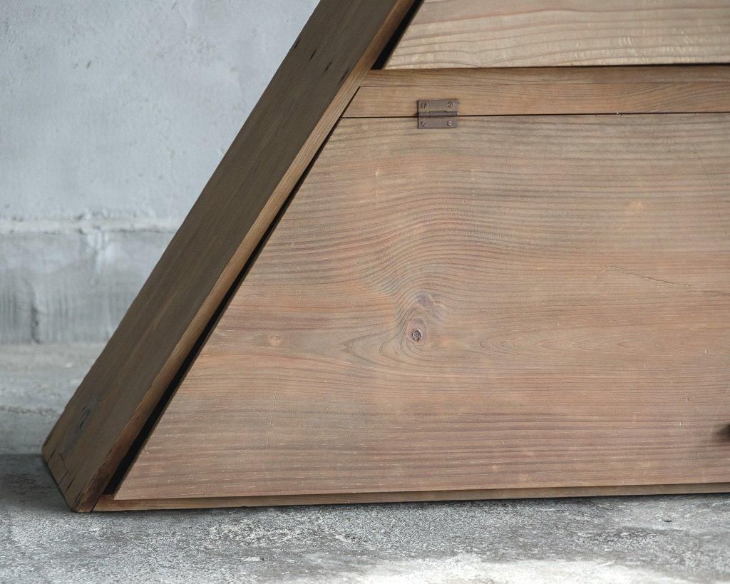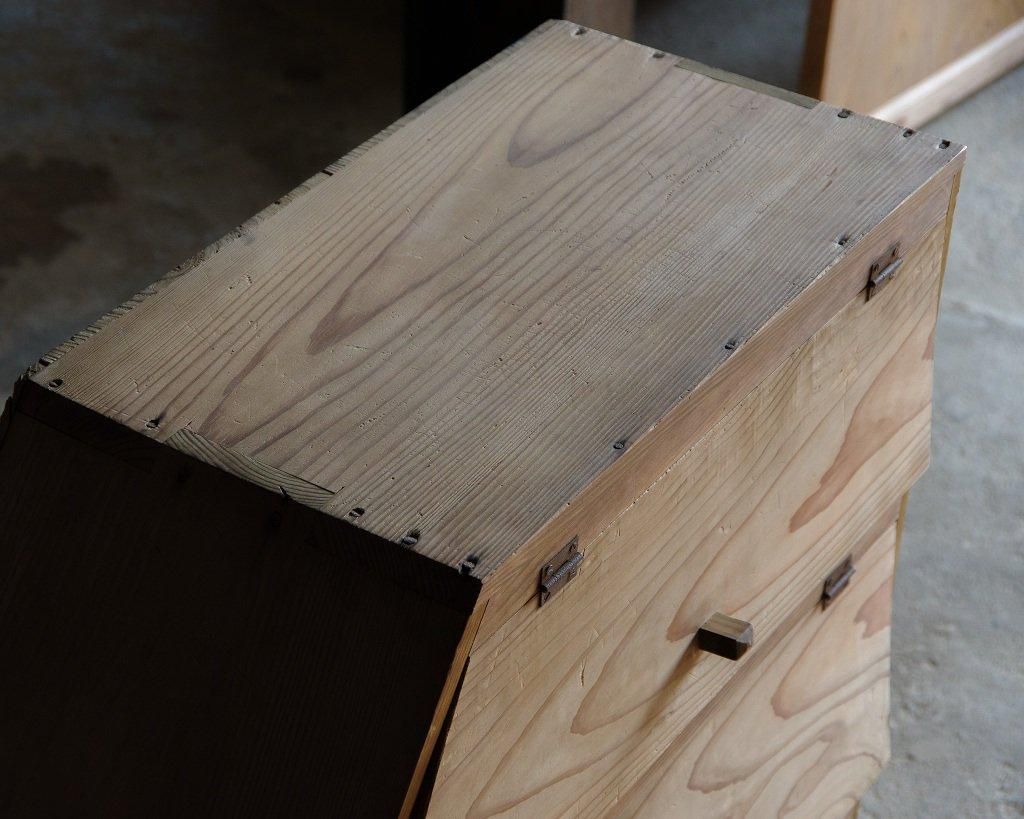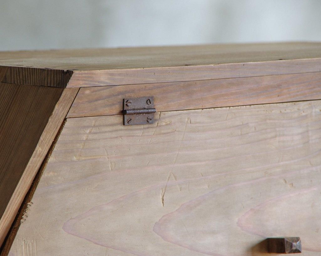 使い込まれた杉の木肌、木製のつまみ取手。とても味わいがあります。