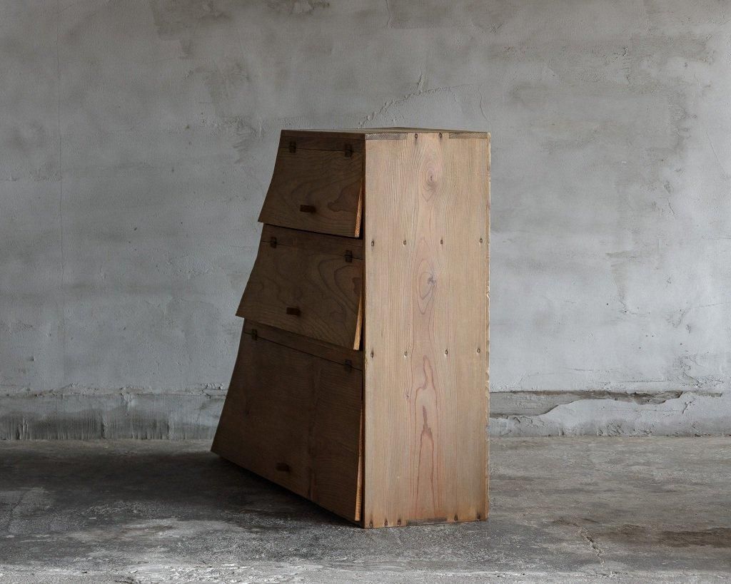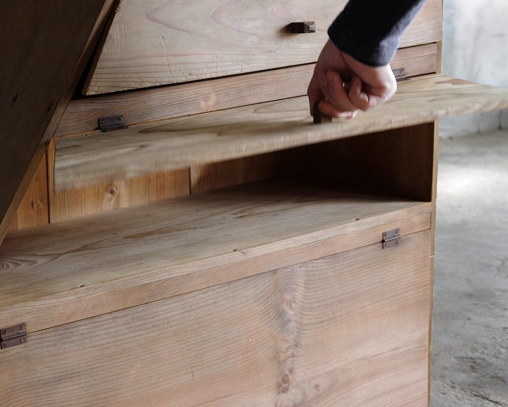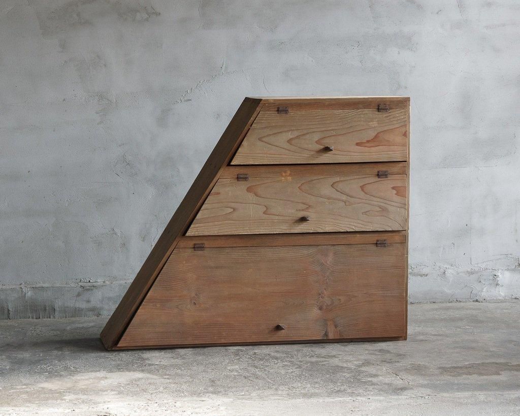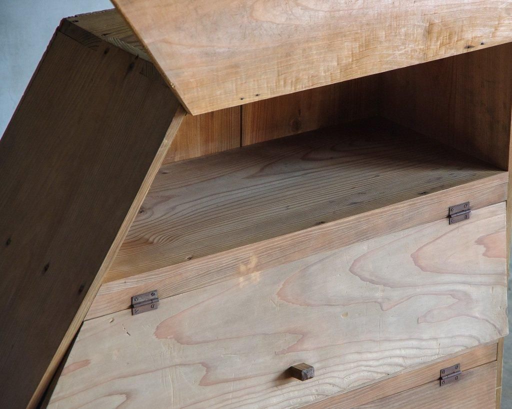 使い込まれた杉の木肌、木製のつまみ取手。とても味わいがあります。