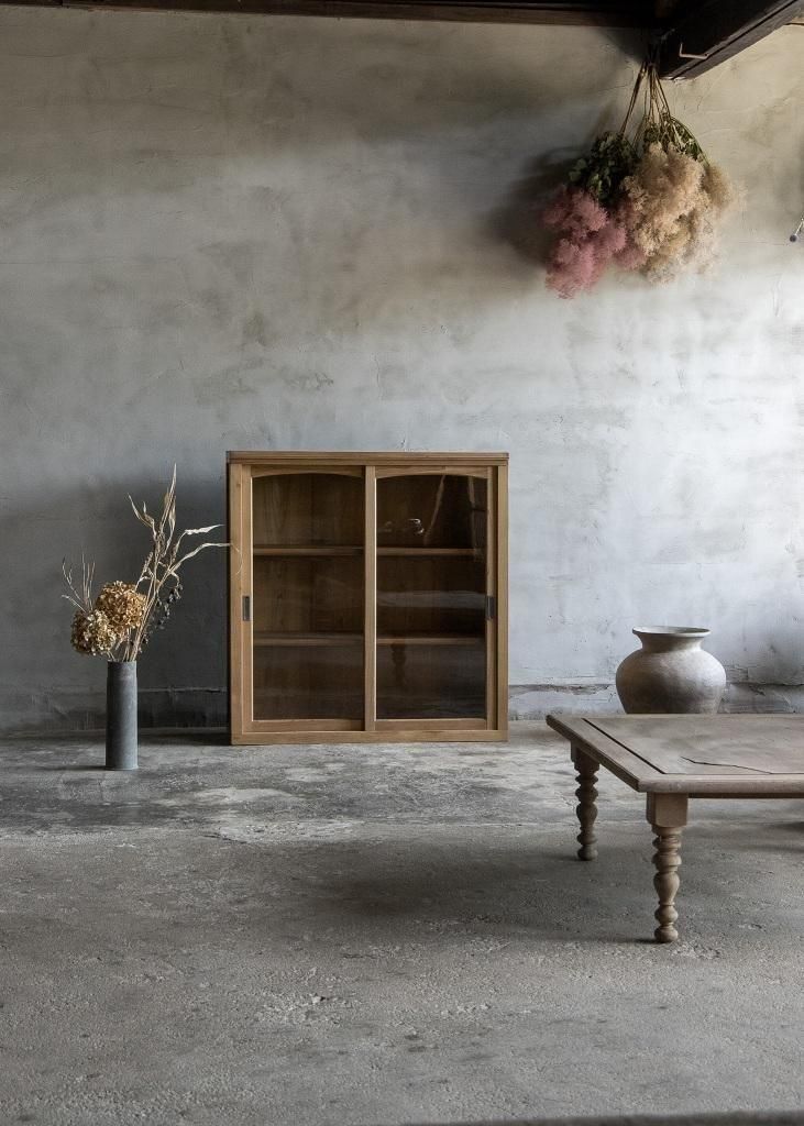 また、ガラスにはキズやくもり、金属類にはサビなどがある場合もございますが、いずれも家具として使用上問題ないものとして味わいとして残しています。