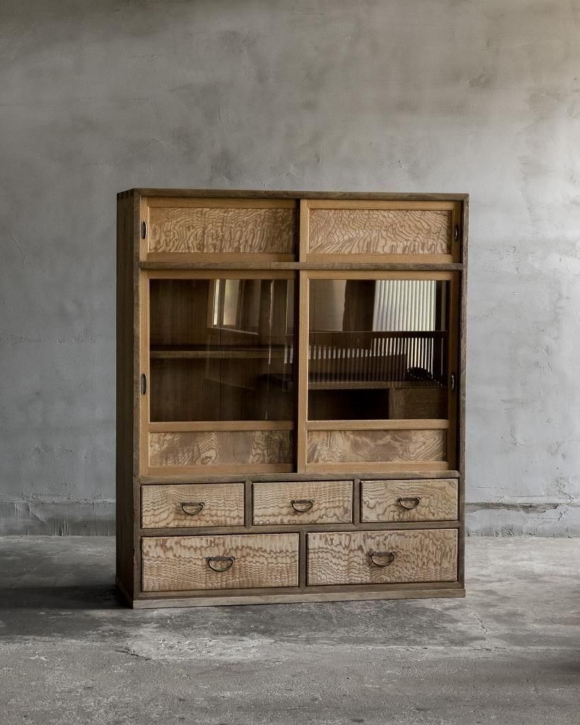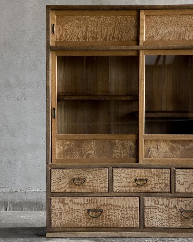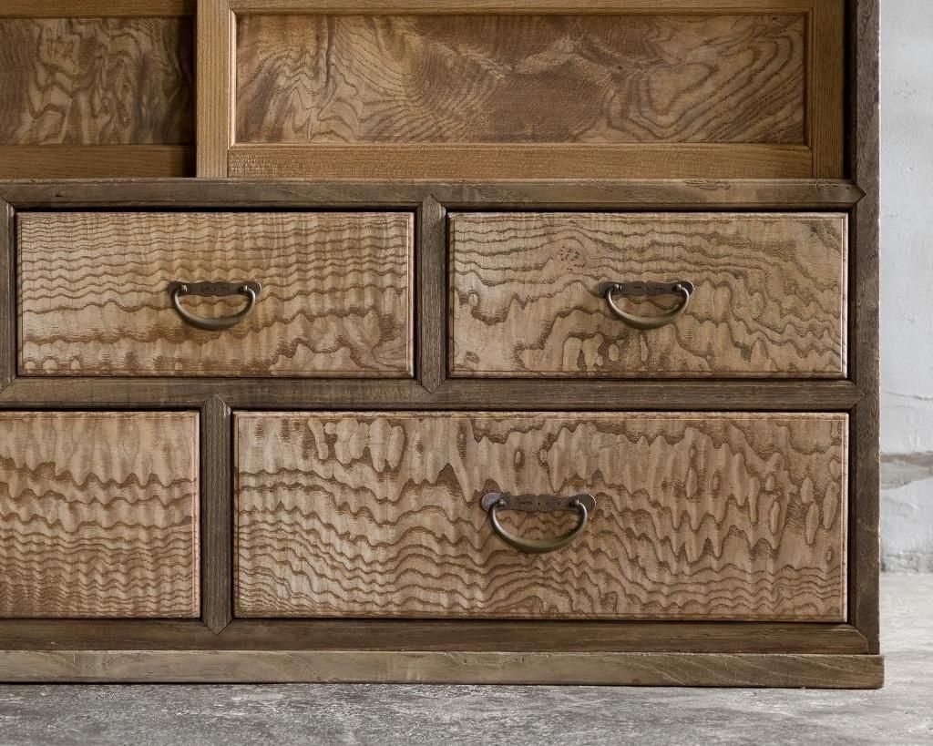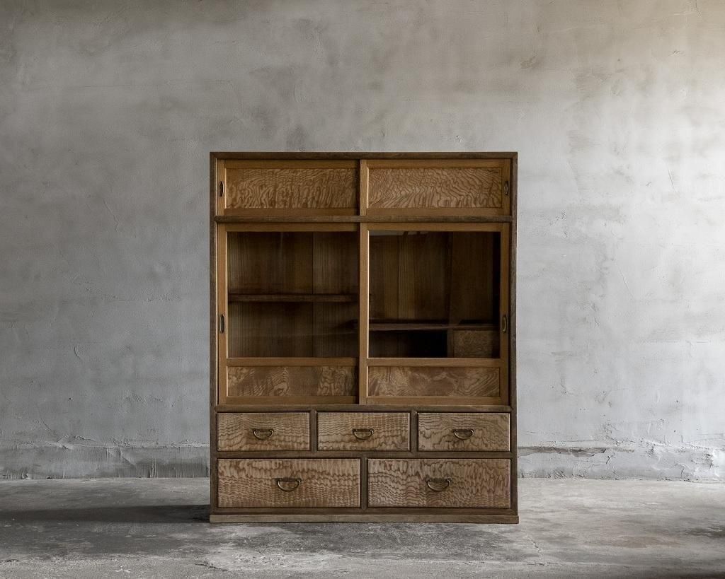 趣ある波杢の茶箪笥。