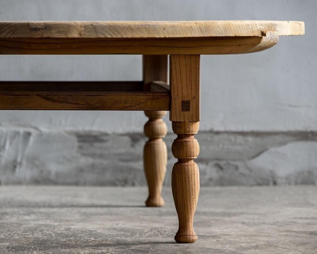 杉の天板に、欅の脚を組み合わせた設え。