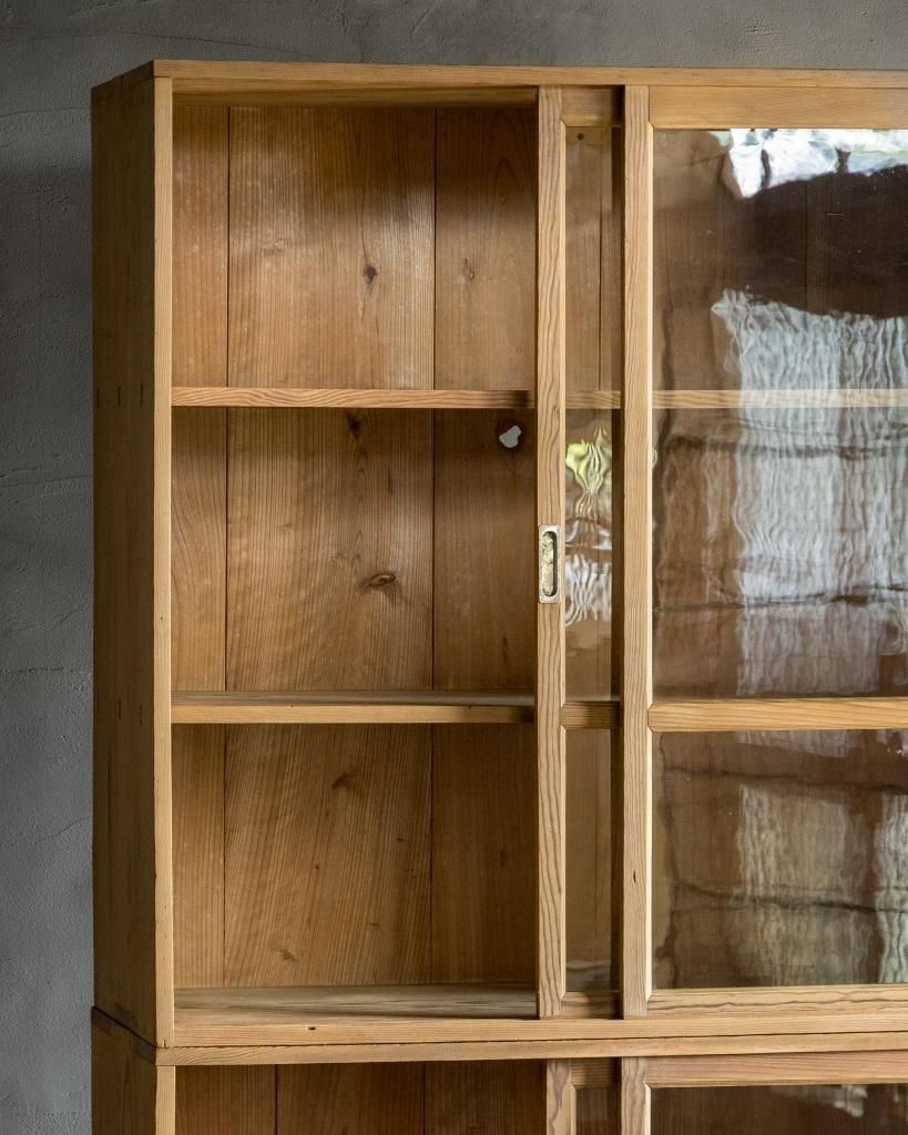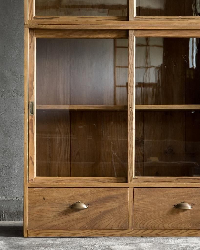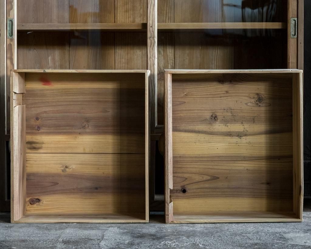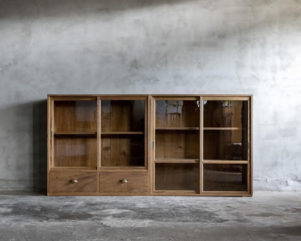 重ね式のガラス戸棚。