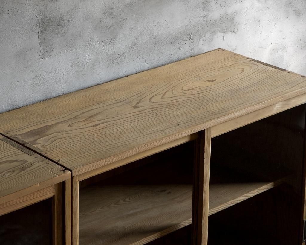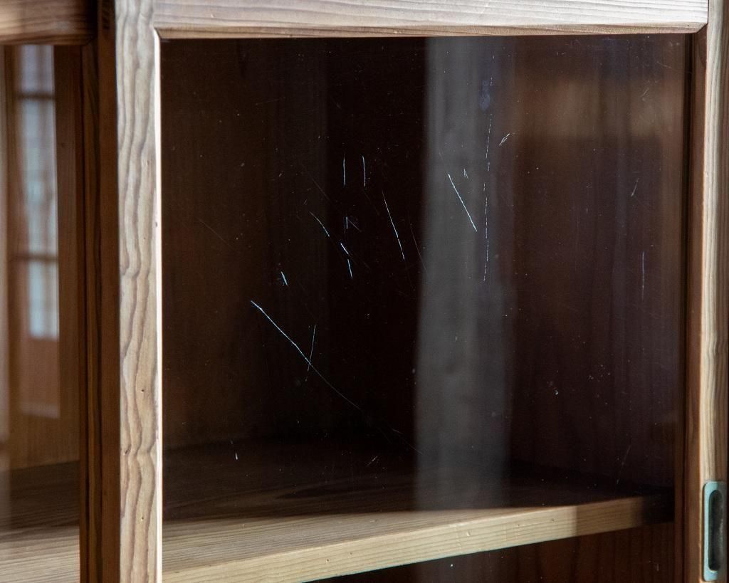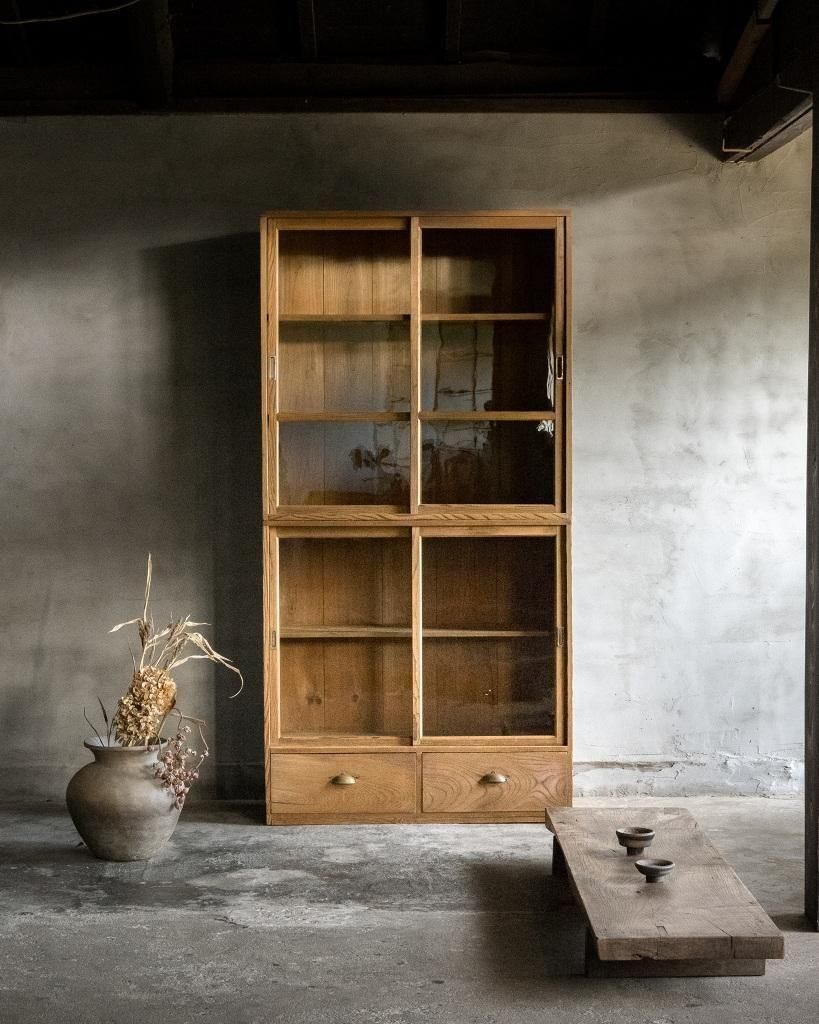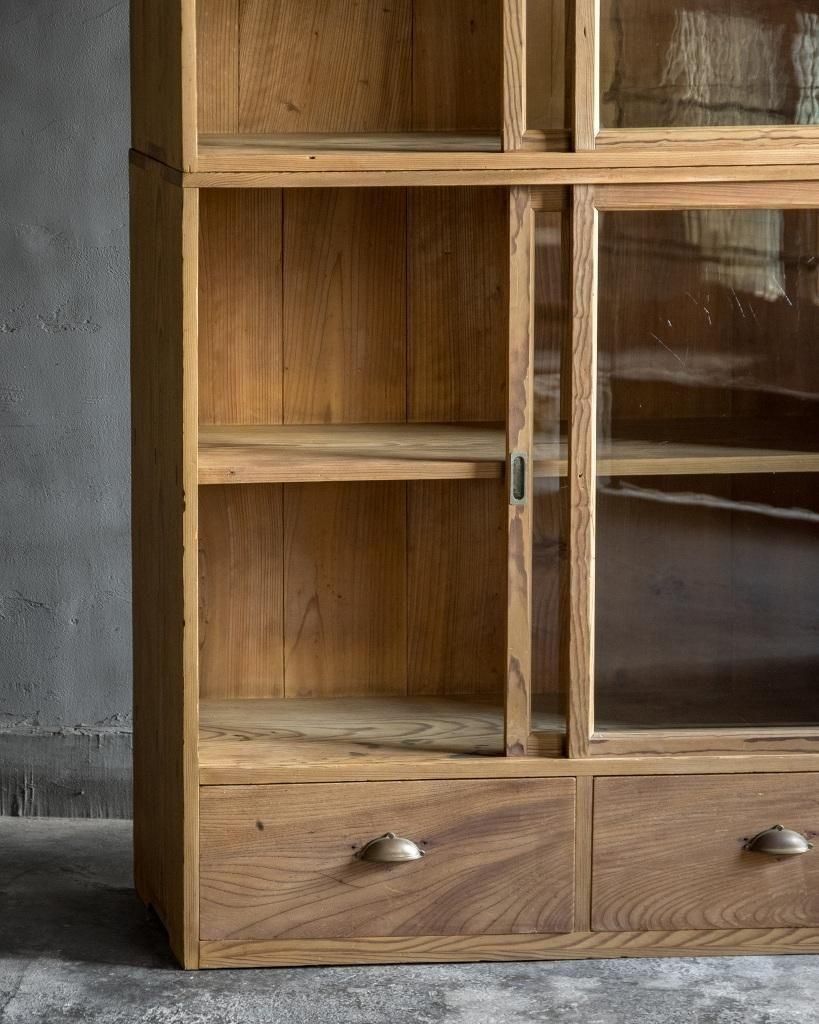 重ね式のガラス戸棚。