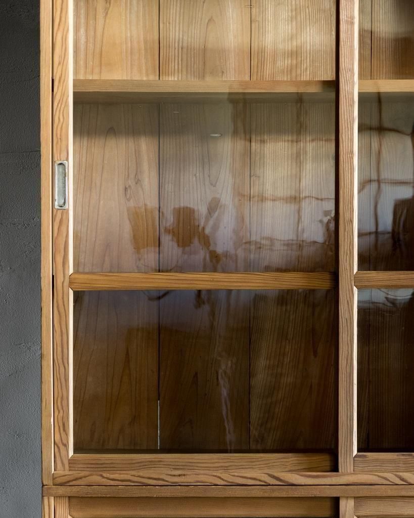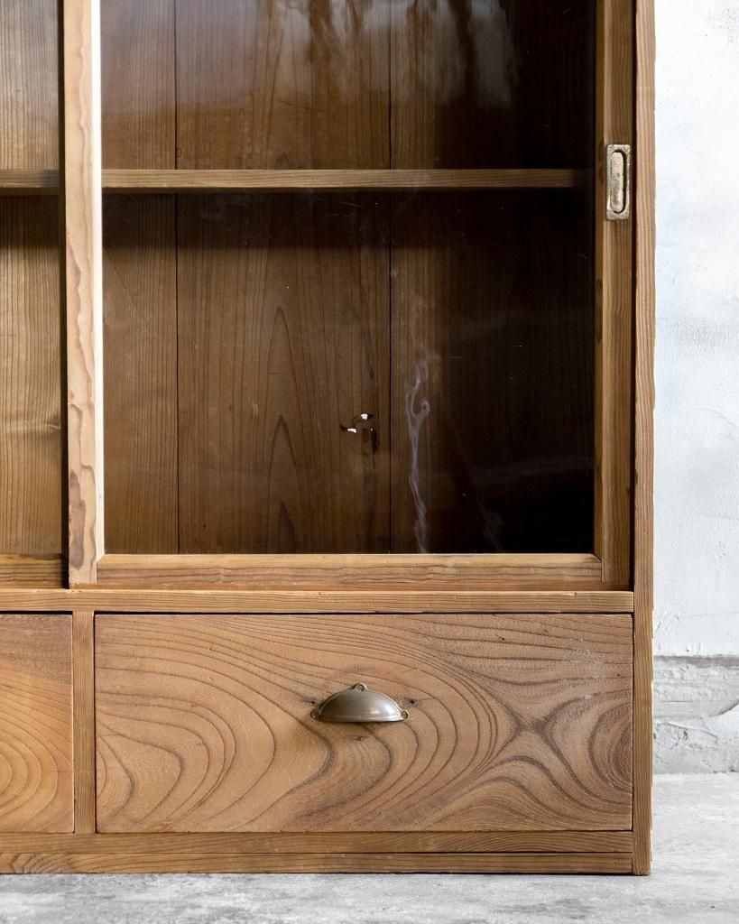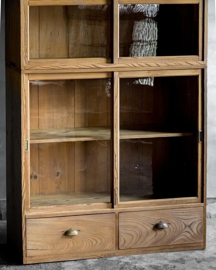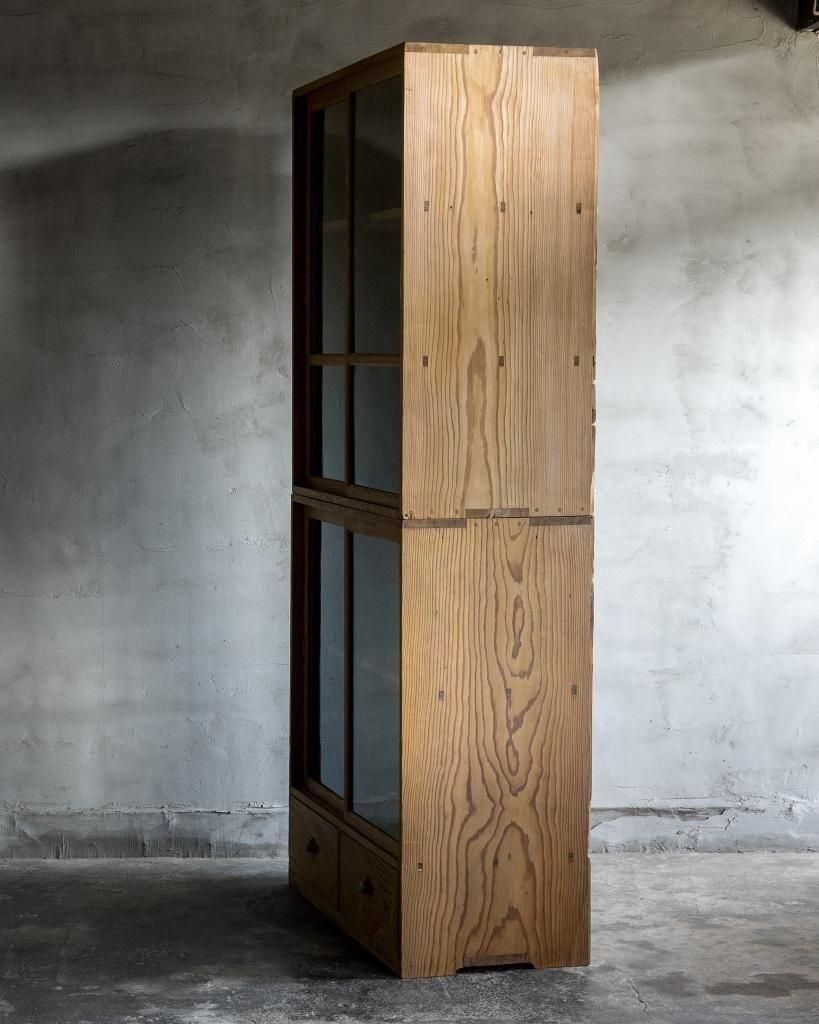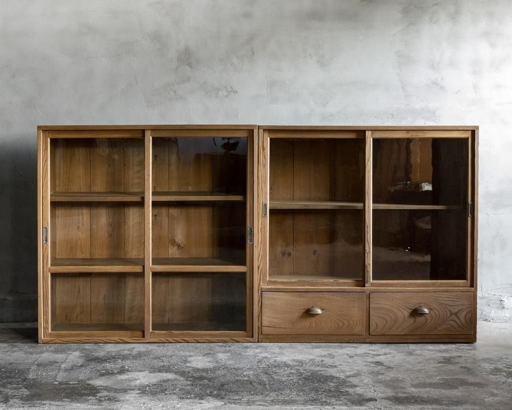 重ね式のガラス戸棚。