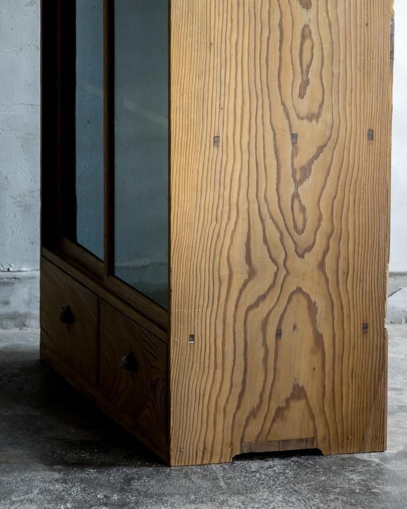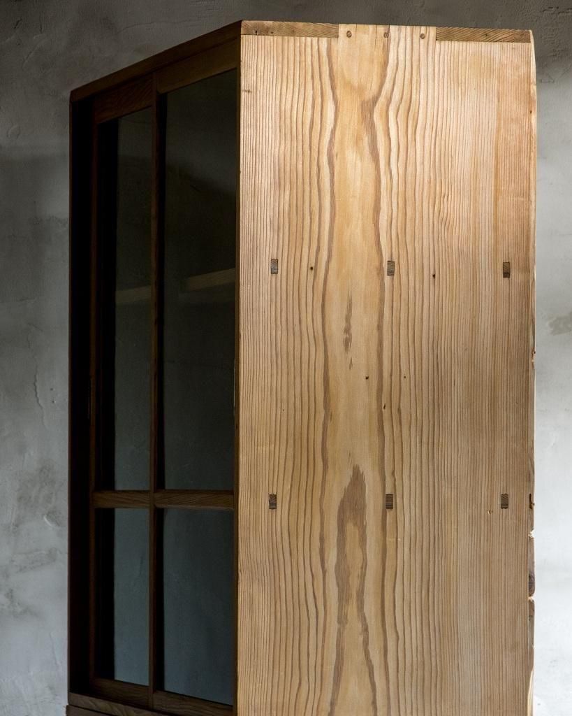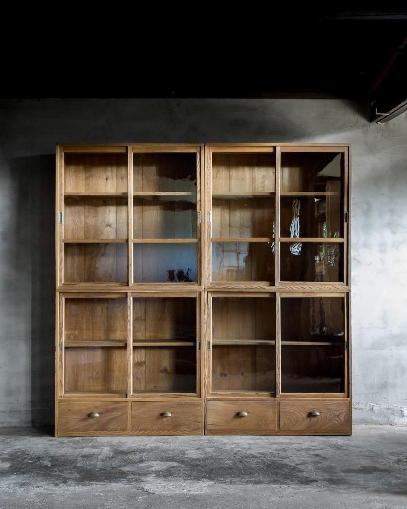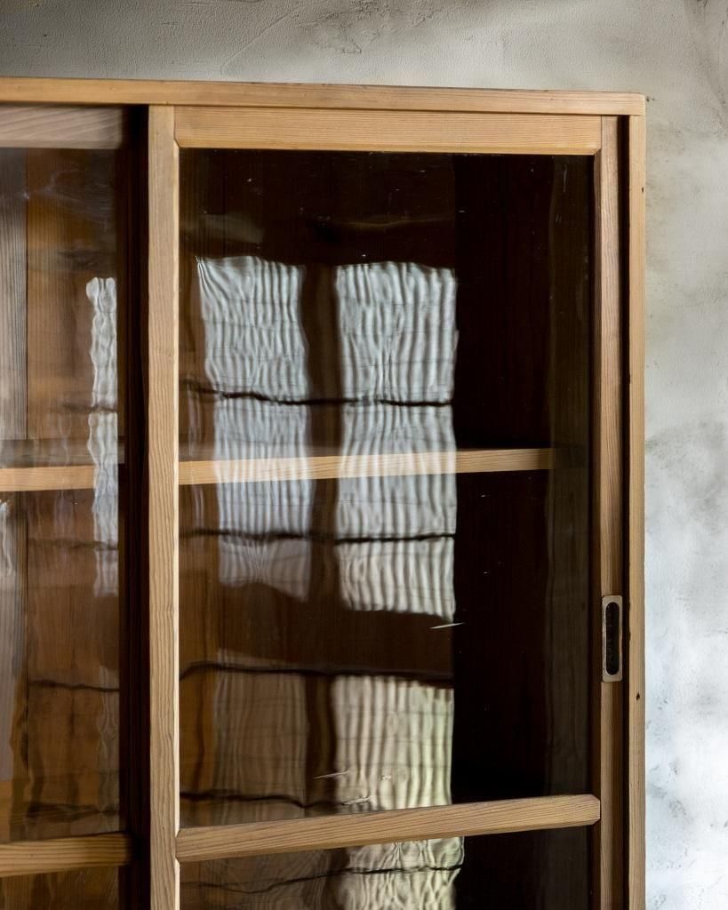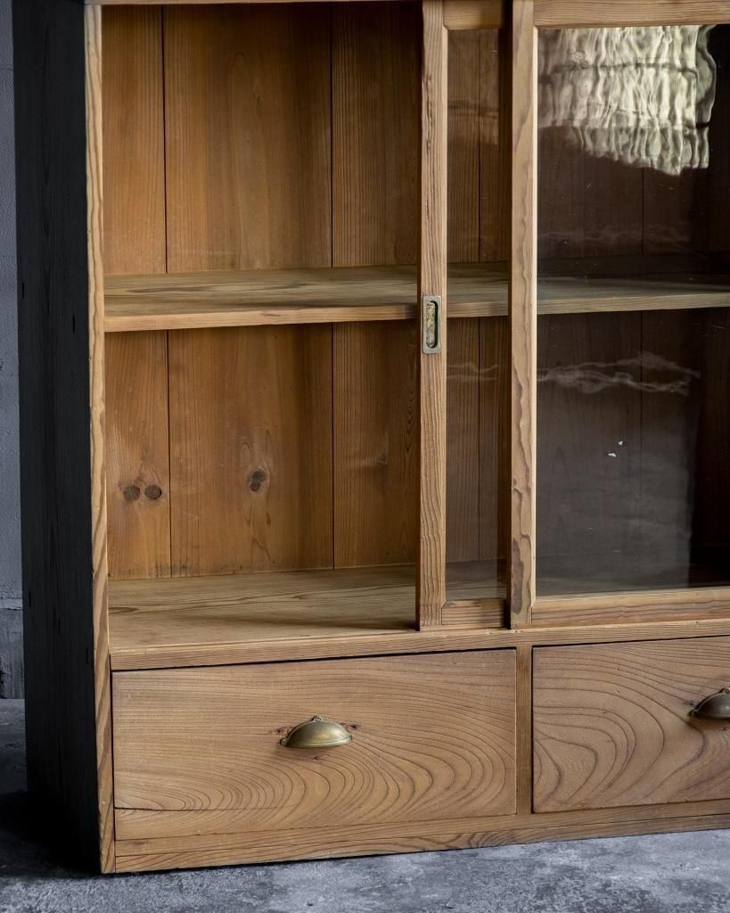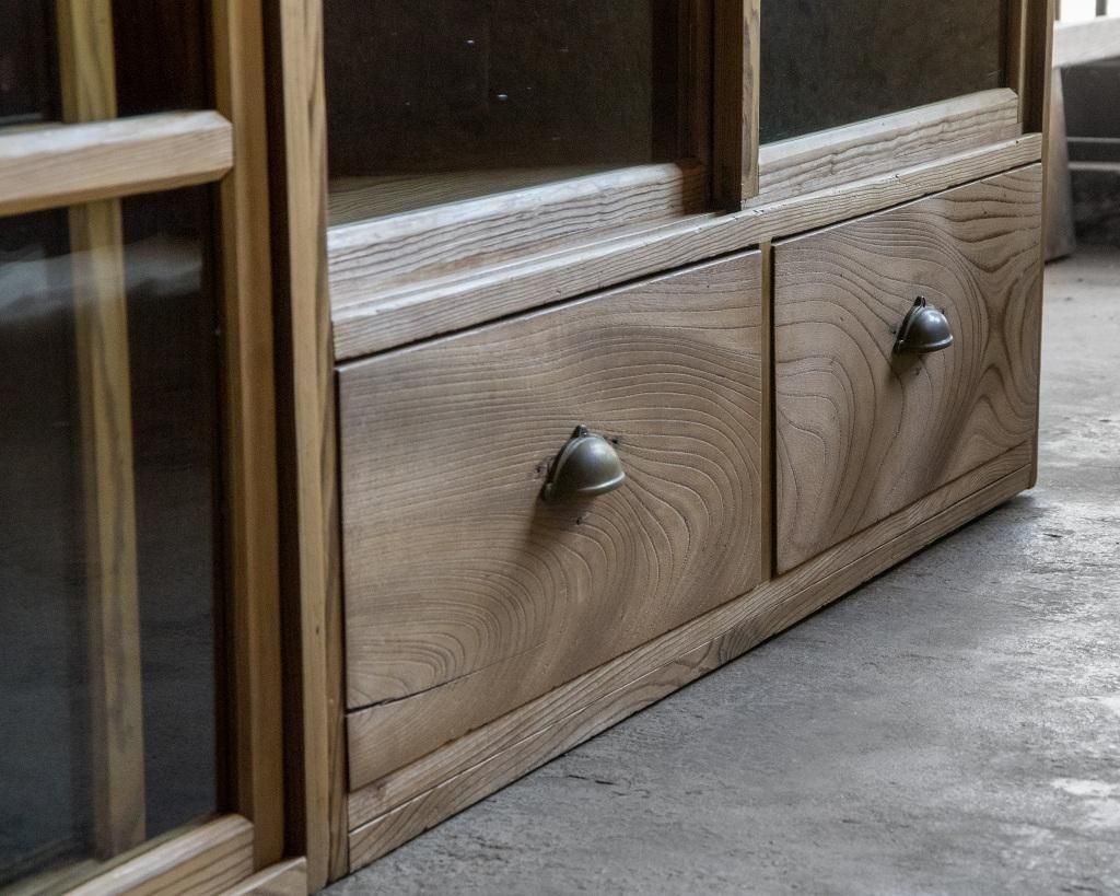 重ね式のガラス戸棚。