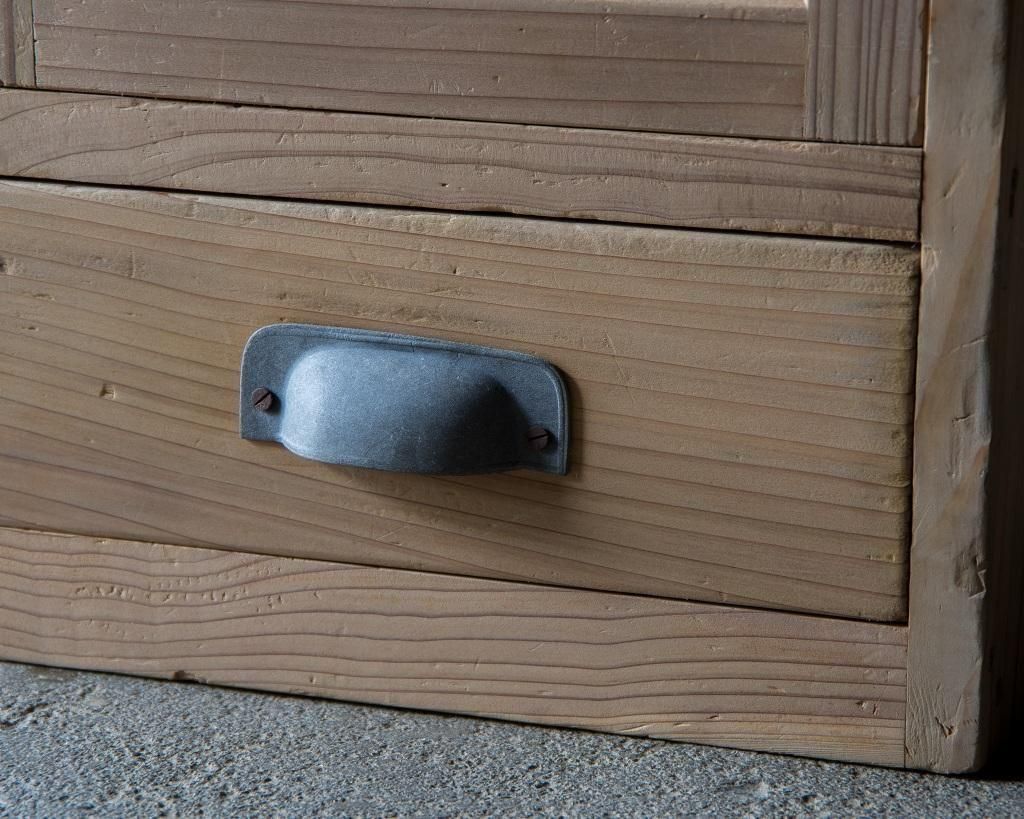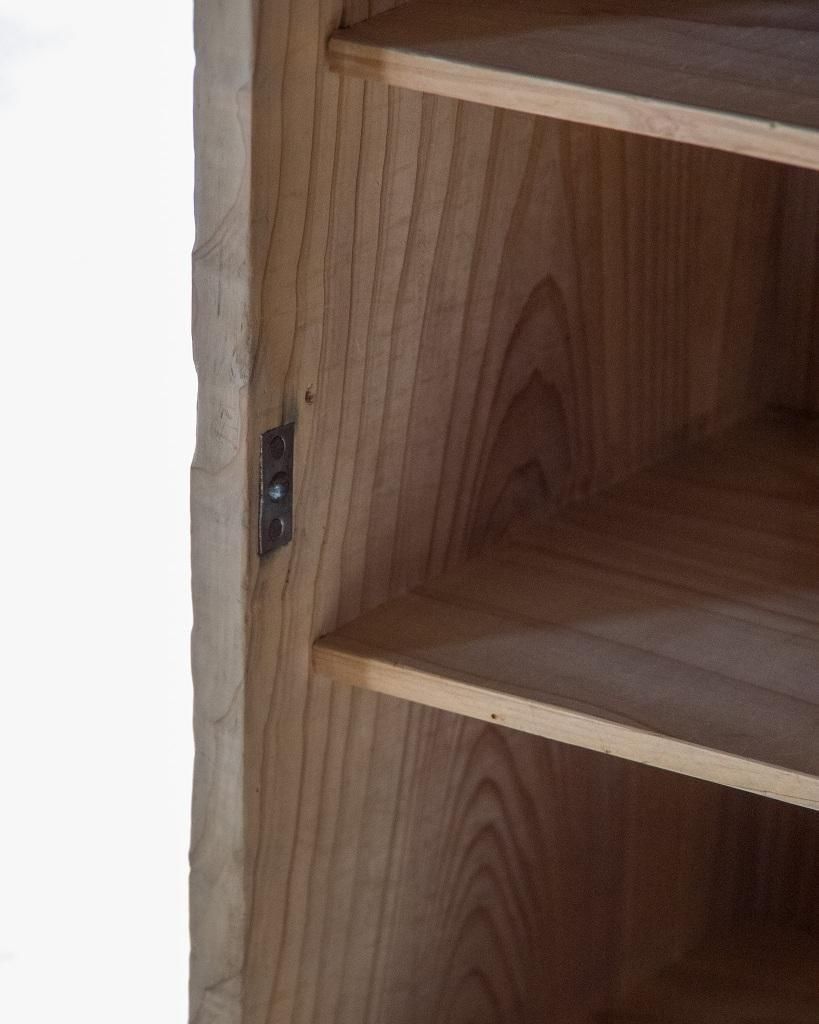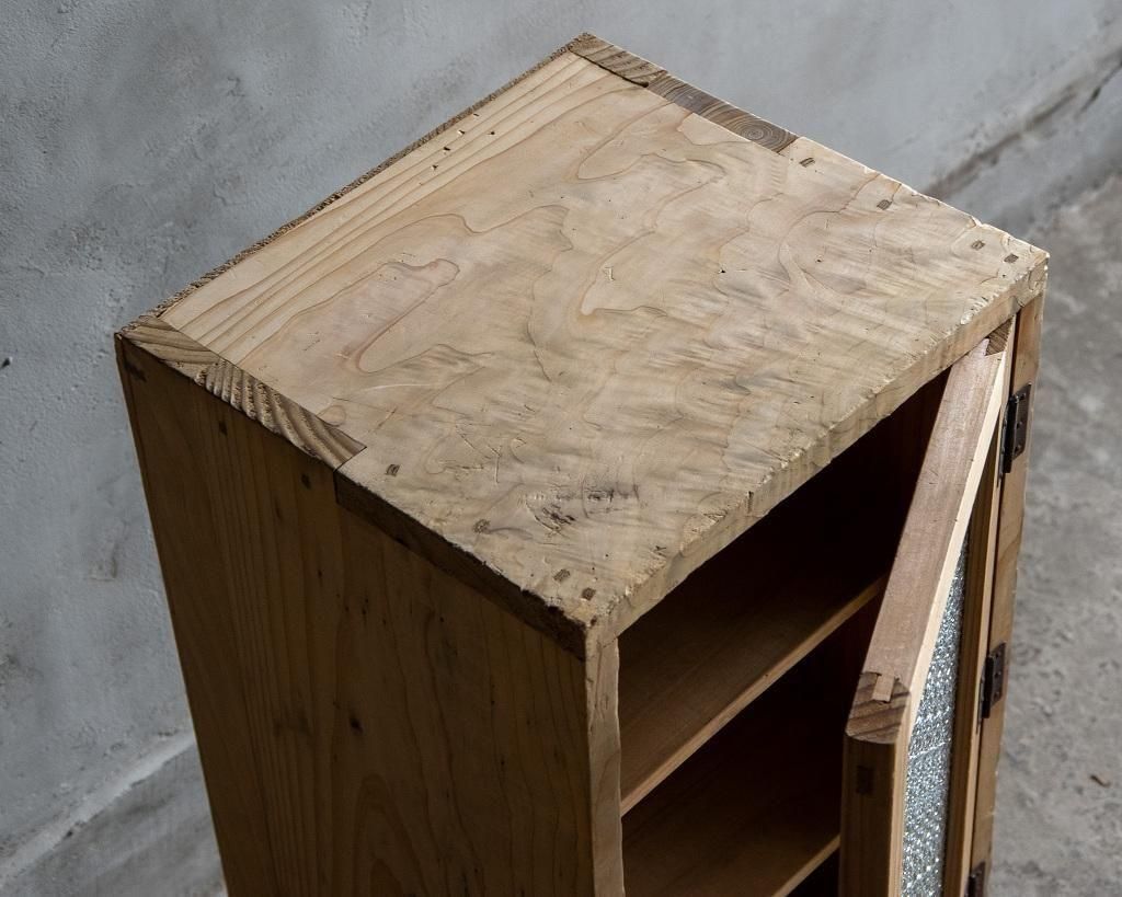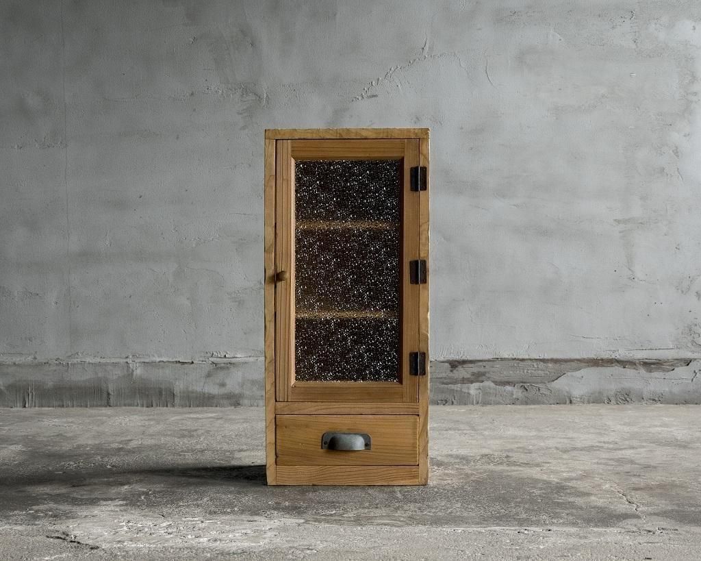 小ぶりながら棚板付きで収納力があり、木製つまみがささやかなアクセントになっています。